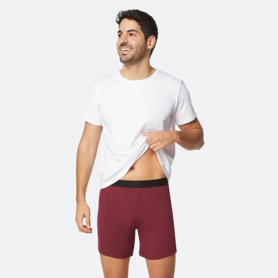بوكسر بقصة مريحة يمنحك الحرية المطلقة. وهو يشبه البوكسر الكلاسيكي بقماشه المطاطي والناعم الملمس مايكرو مودال، لكنه يختلف عنه في تصميمه، فهو يأتي بقصة واسعة وفضفاضة أكثر. إذا كنت ترتدي بالعادة بوكسرات بطبعة مربعات بلون مغاير وبقماش غير مطاطي أبدًا (لا تقلق، سيبقى هذا السرّ بيننا)، فسيعجبك هذا البوكسر كثيرًا ولن تعرف قيمته إلّا عندما تجربه. حتى إن كنت تفضّل القصة الضيقة، فهذا التصميم رائع للنوم أو الاسترخاء أو مشاهدة حلقات متواصلة على Netflix. تفاصيل تهمك- حزام خصر أسود بسيط ومرن جدًا